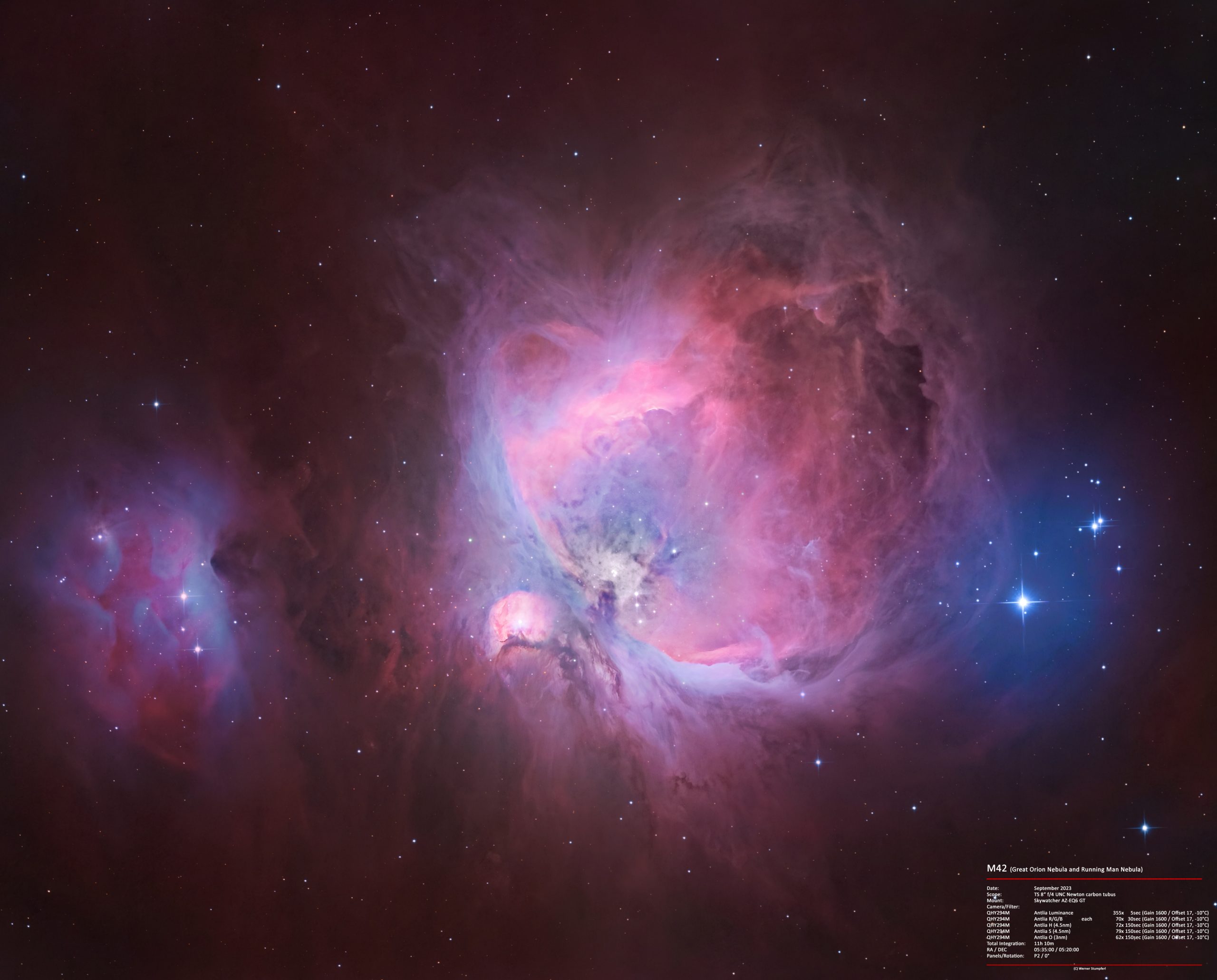 Der Orionnebel (Katalogbezeichnung M 42 oder NGC 1976) ist ein Emissionsnebel im Sternbild Orion. Er befindet sich – wie das Sonnensystem selbst – im Orionarm der Milchstraße. Durch die große scheinbare Helligkeit seines Zentrums oberhalb der 4. Magnitude ist der Nebel mit bloßem Auge sternähnlich als Teil des Schwertes des Orions südlich der drei Sterne des Oriongürtels gut sichtbar. Insgesamt besitzt er eine Winkelausdehnung von etwa einem Grad.