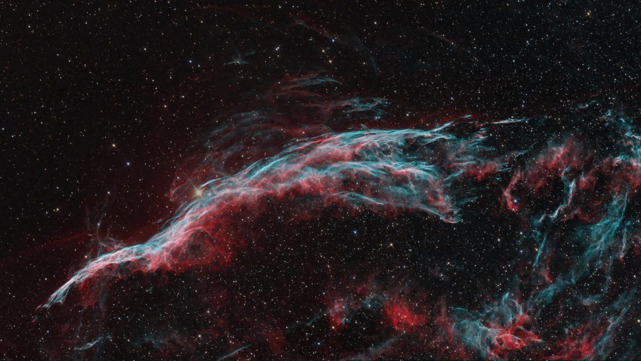 Der Cirrusnebel (auch als Schleier-Nebel, englisch Veil nebula bezeichnet) ist der im optischen Spektrum sichtbare Teil des Cygnusbogens, einer Ansammlung von Emissions- und Reflexionsnebeln, die sich in einer Entfernung von rund 2400 Lichtjahren im Sternbild Schwan befinden. Sie sind zusammen der Überrest einer Supernova, die vor ca. 8.000 Jahren stattfand.