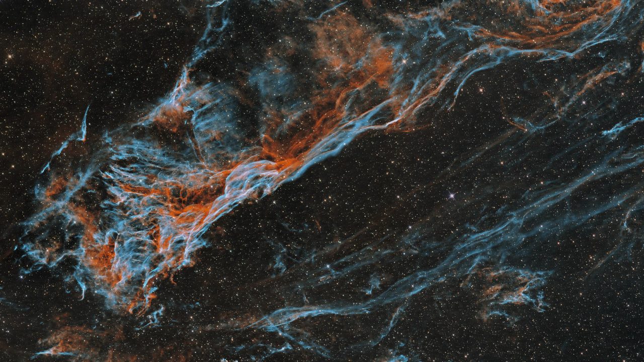 Der Cirrusnebel (auch als Schleier-Nebel, englisch Veil nebula bezeichnet) ist der im optischen Spektrum sichtbare Teil des Cygnusbogens, einer Ansammlung von Emissions- und Reflexionsnebeln, die sich in einer Entfernung von rund 2400 Lichtjahren im Sternbild Schwan befinden. Sie sind zusammen der Überrest einer Supernova, die vor ca. 8.000 Jahren stattfand.