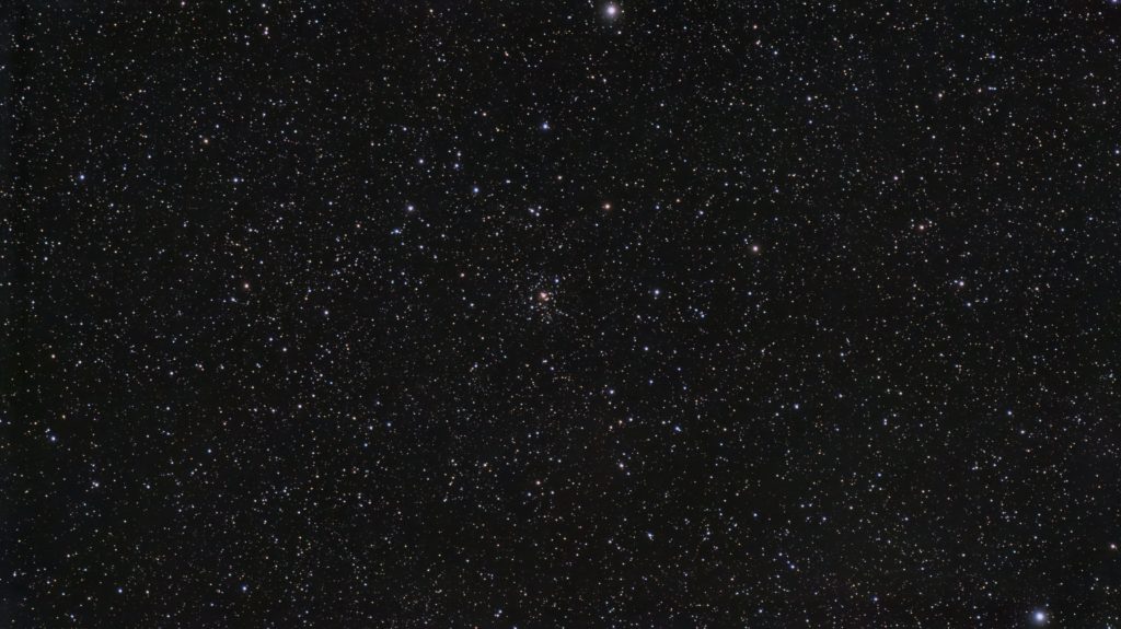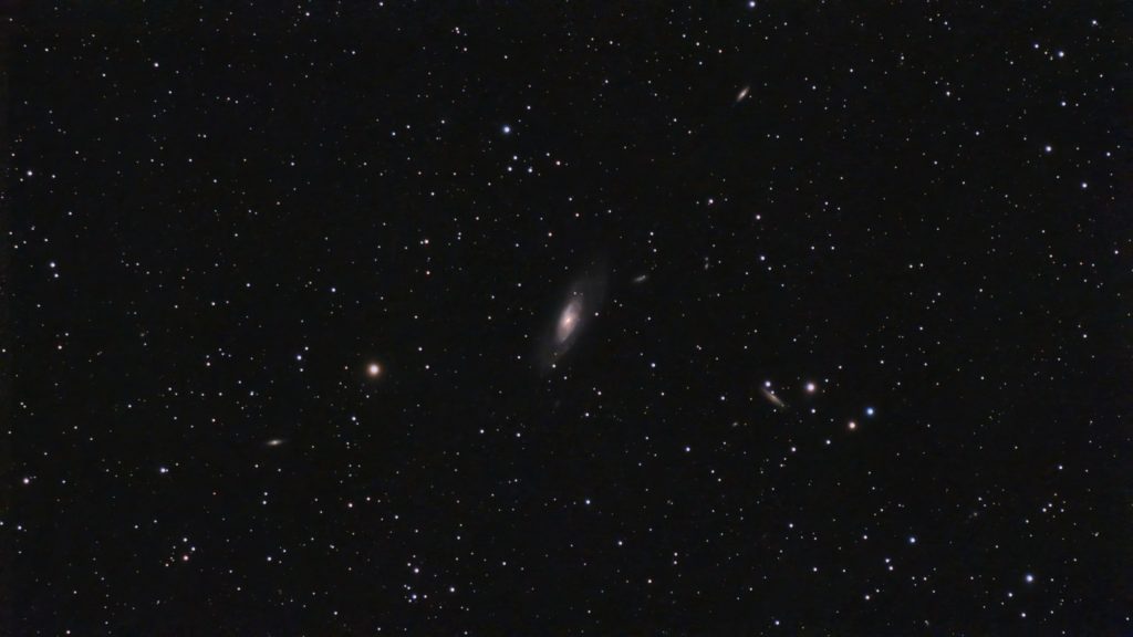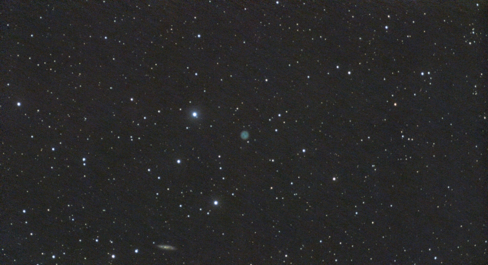 Hier noch M97 – Eulennebel und unten im Bild noch M108. Zumindest sieht man ihn noch, die Eulenaugen sind gerade noch erkennbar. Mehr ist mit dieser Brennweite und Auflösung nicht mehr zu machen. Das Bild entstand mit ca. 120x 60 Sekunden mit dem Dualband Filter (also 2 Stunden Aufnahmezeit)
